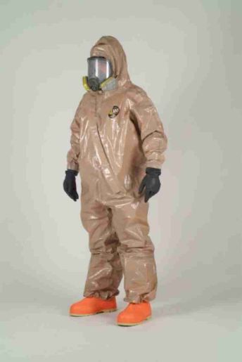 2.整件防护衣通过美国消防协会严格的NFPA1991 2005 版标准测试,材质通过ASTM F1001(採用ASTM F739之测试方式)能阻绝丙酮、氯、氨气、苯胺、甲醇、己烷、甲醛、盐酸、氢氟酸、硝酸、硫酸、四氢夫喃、甲苯之破出时间均在8小时以上,附第三公证单位测试合格证明文件。