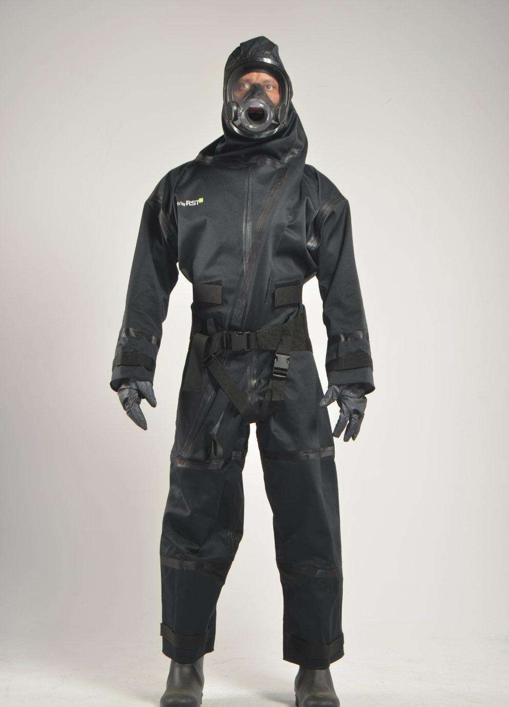 整套防护服为封闭、连体式结构,由连体防护服、防核全面罩、过滤罐、射线防护手套、防射线胶带、防护靴、便携包组成,整套产品重量不大于10公斤。