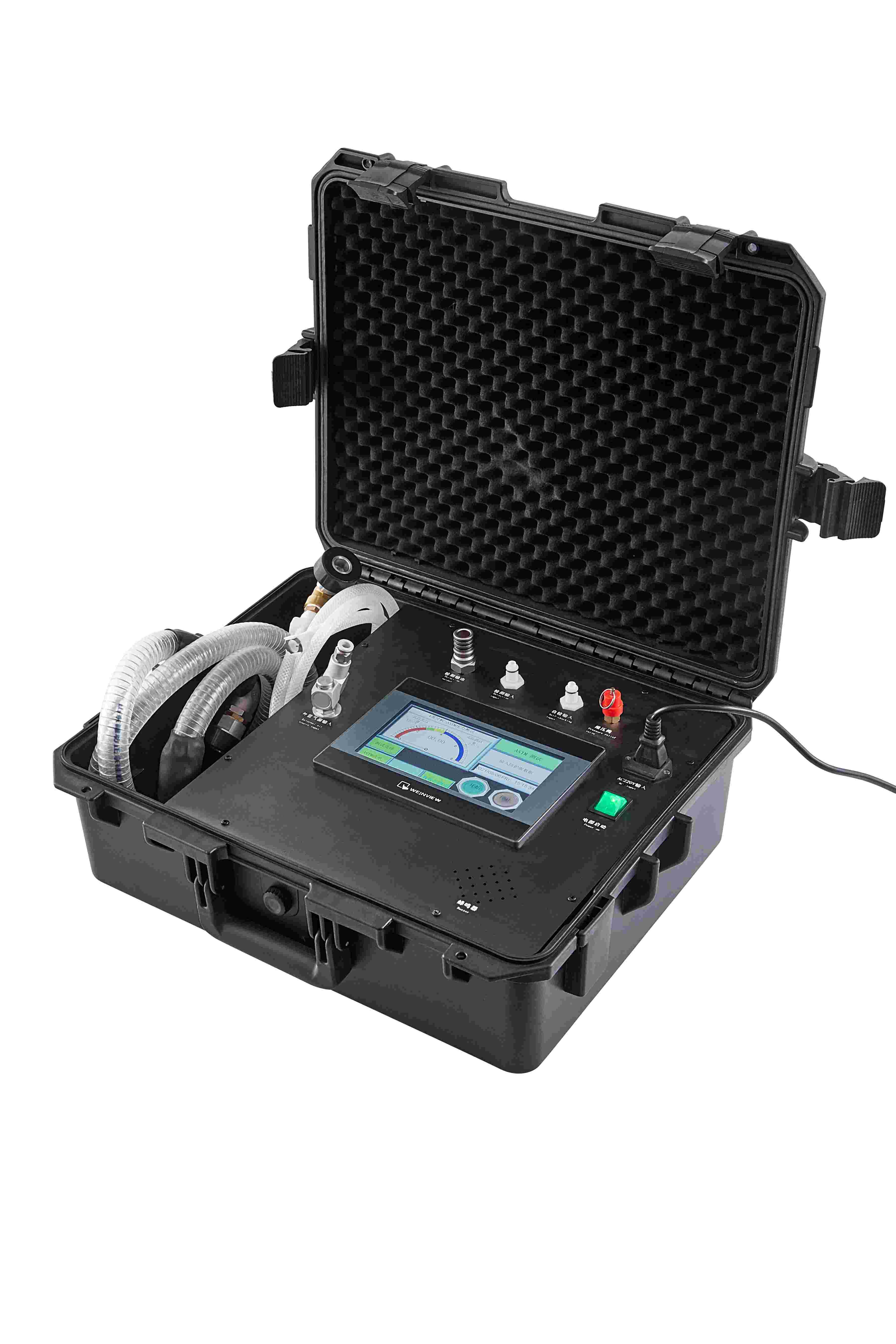 全自动防化服检测仪由机箱、充气管、压力采样管和转换接头,气泵,USB接口等组成。