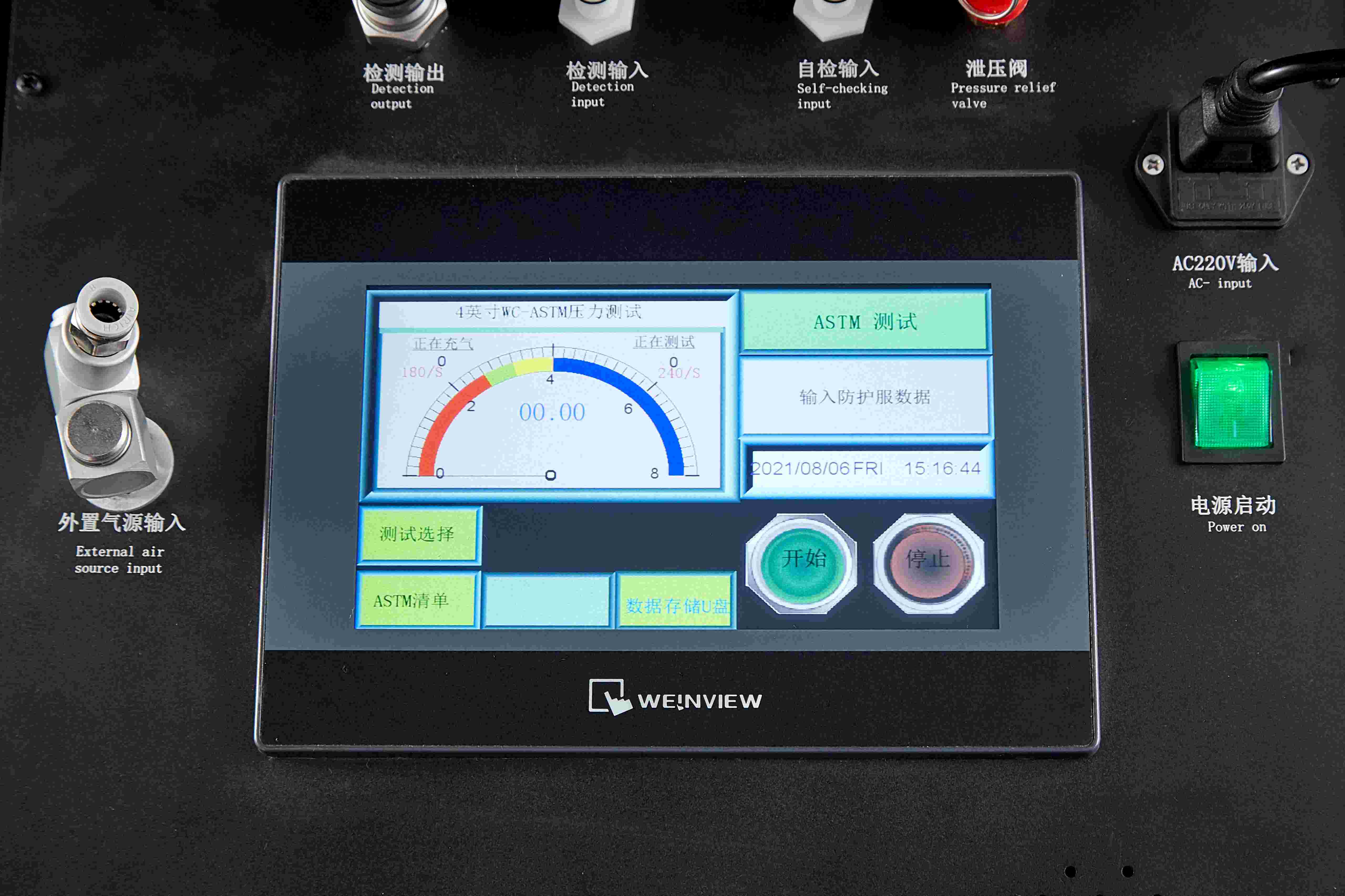 1.通过计算机程序控制,触摸屏显示和操作,实现自动加压,自动检测,自动计时,自动判断检测是否合格,无需人工控制,中英文操作界面,检测准确,使用方便。
